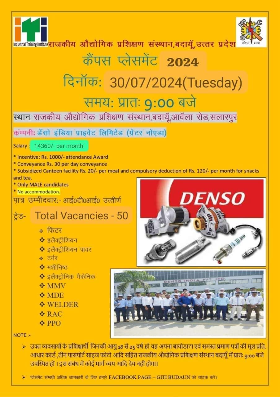 - Venue : राजकीय औद्योगिक प्रशिक्षण संस्थान (आईटीआई) बदायू आवला रोड सलारपुर उत्तर प्रदेश
