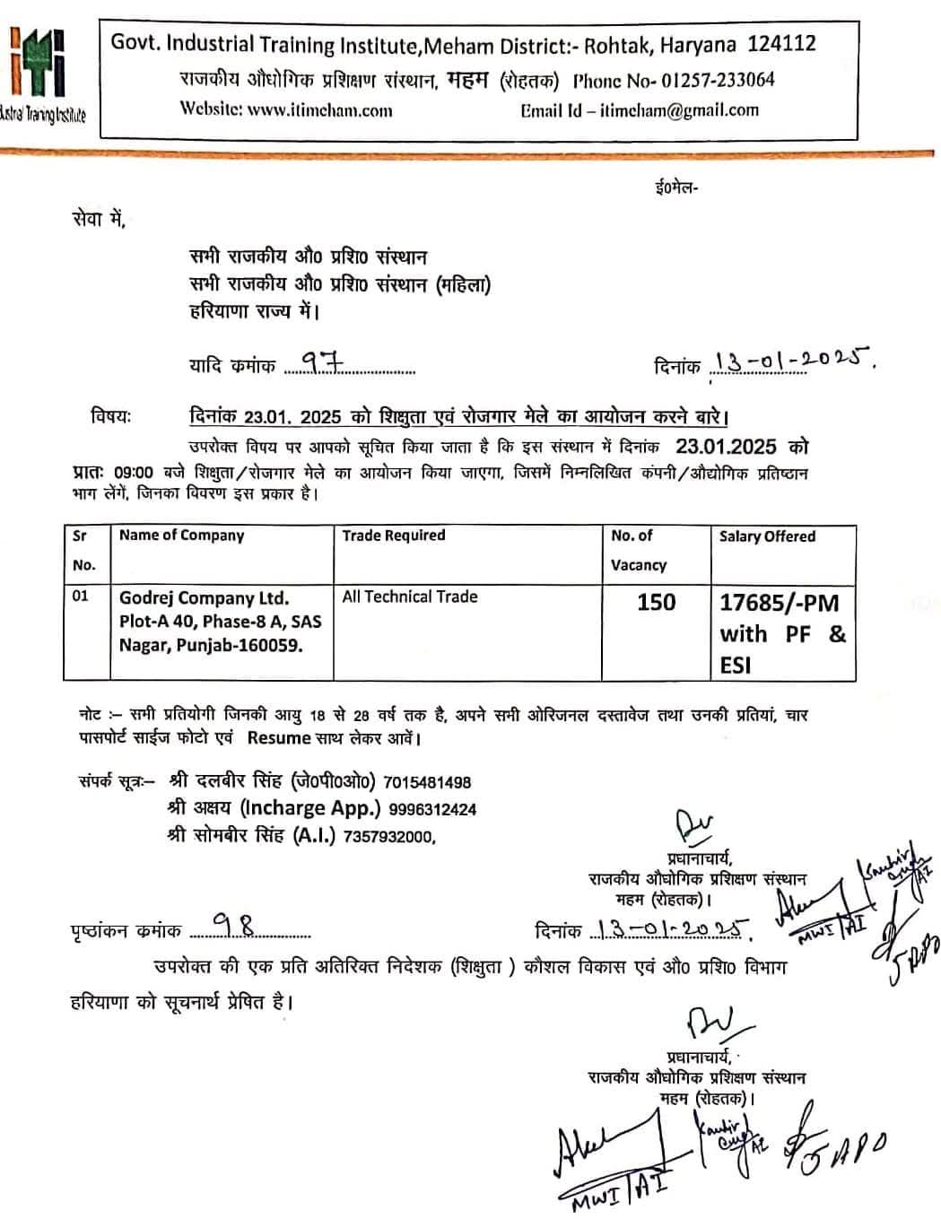 - Venue : राजकीय औद्योगिक प्रशिक्षण संस्थान महम रोहतक हरियाणा
