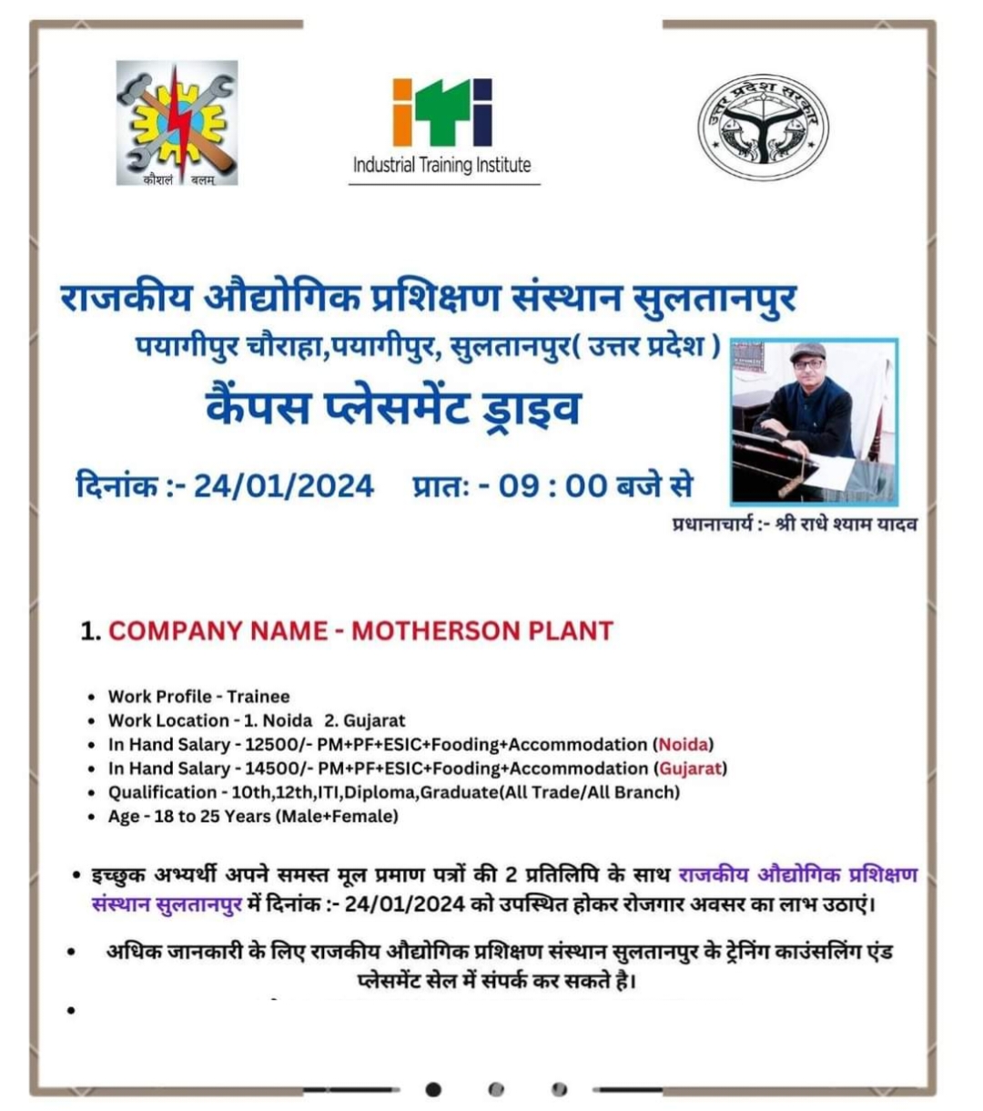 - Venue – राजकीय औद्योगिक प्रशिक्षण संस्थान सुल्तानपुर उत्तर प्रदेश