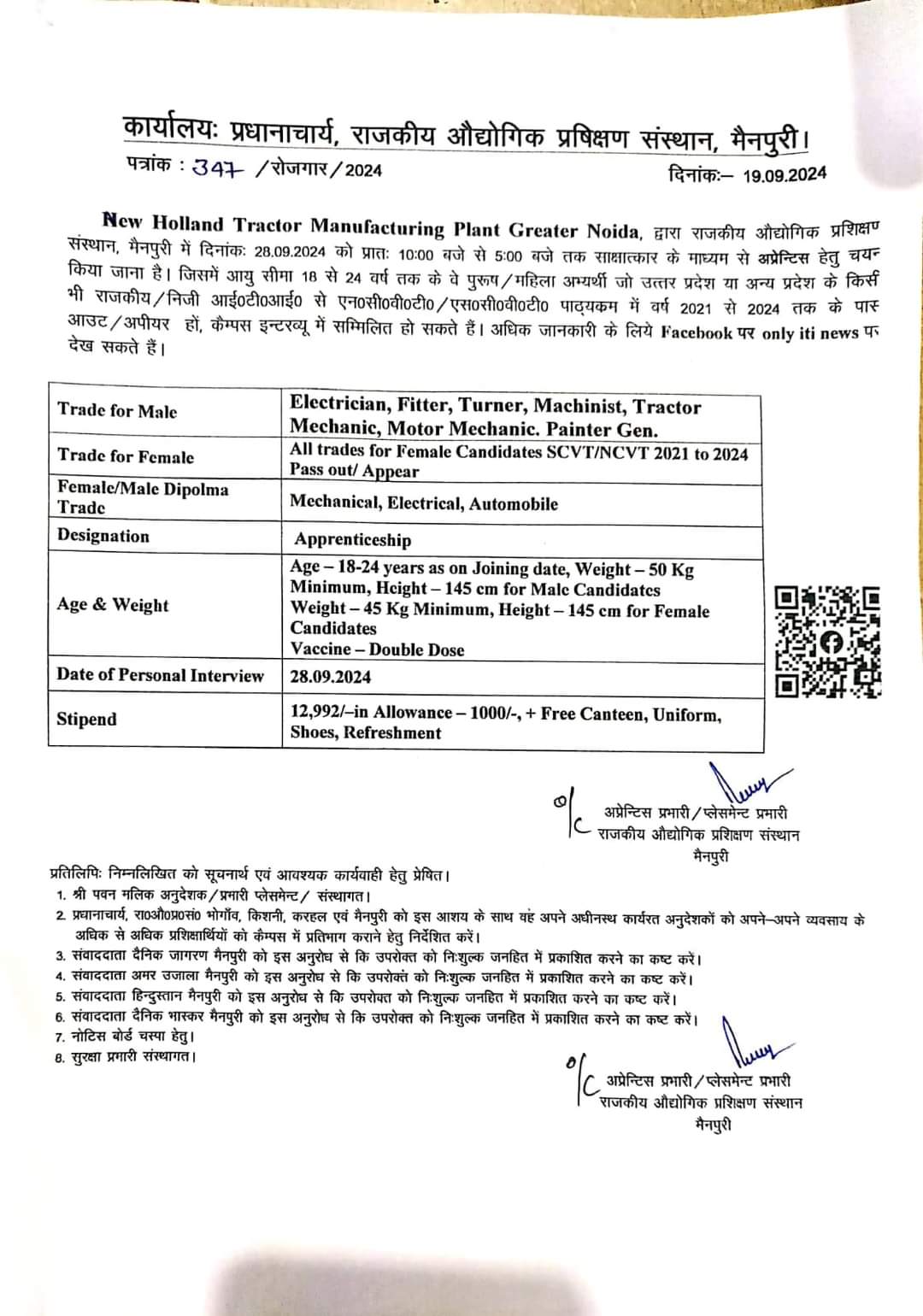 Venue : राजकीय औद्योगिक प्रशिक्षण संस्थान मैनपुरी उत्तर प्रदेश